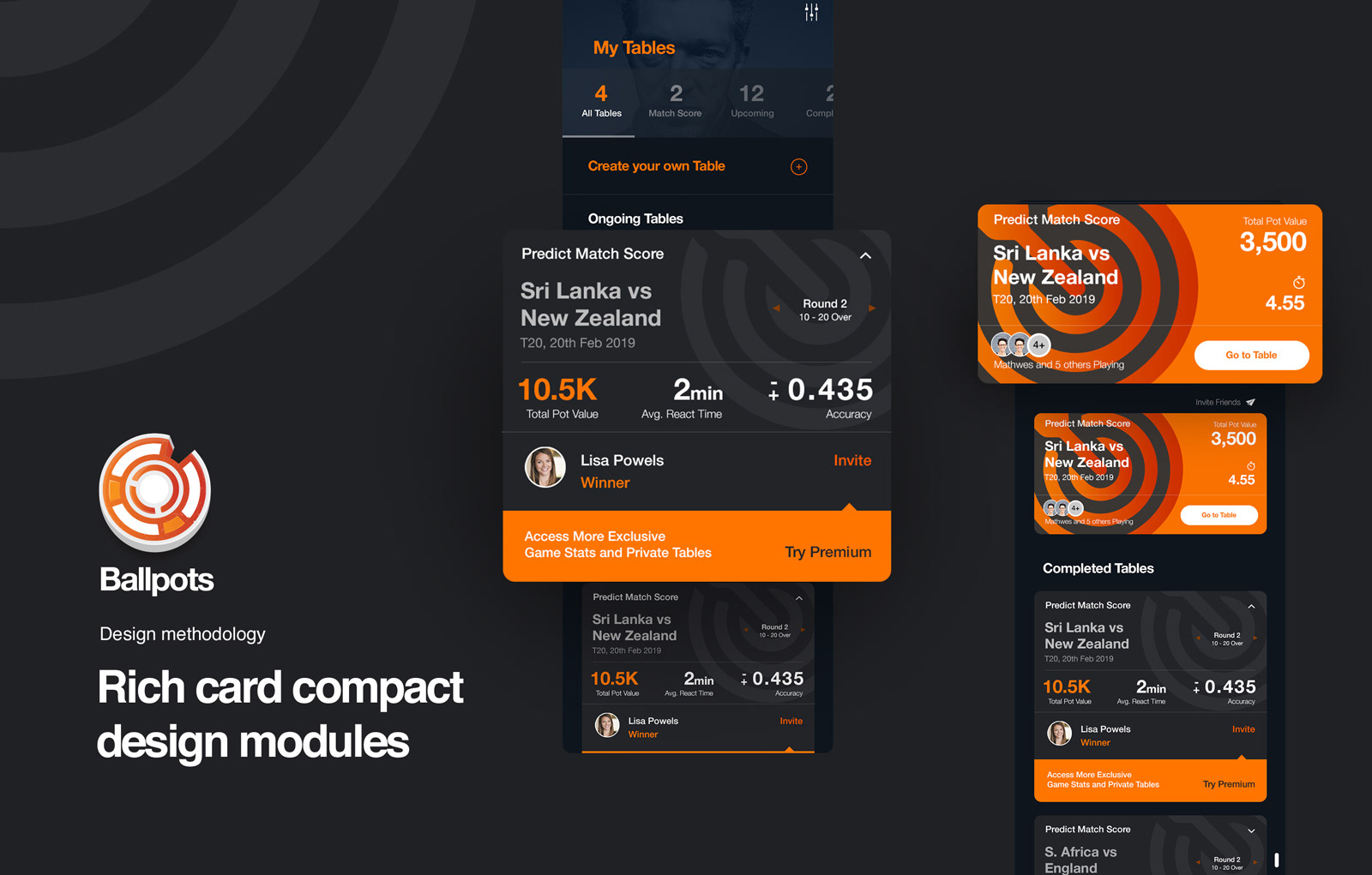 Ballpots is a Sport and Fusion APP with unique functionality. The design idea is to capture the dynamic spirit of the sport and app functionality based on compact design methodology.