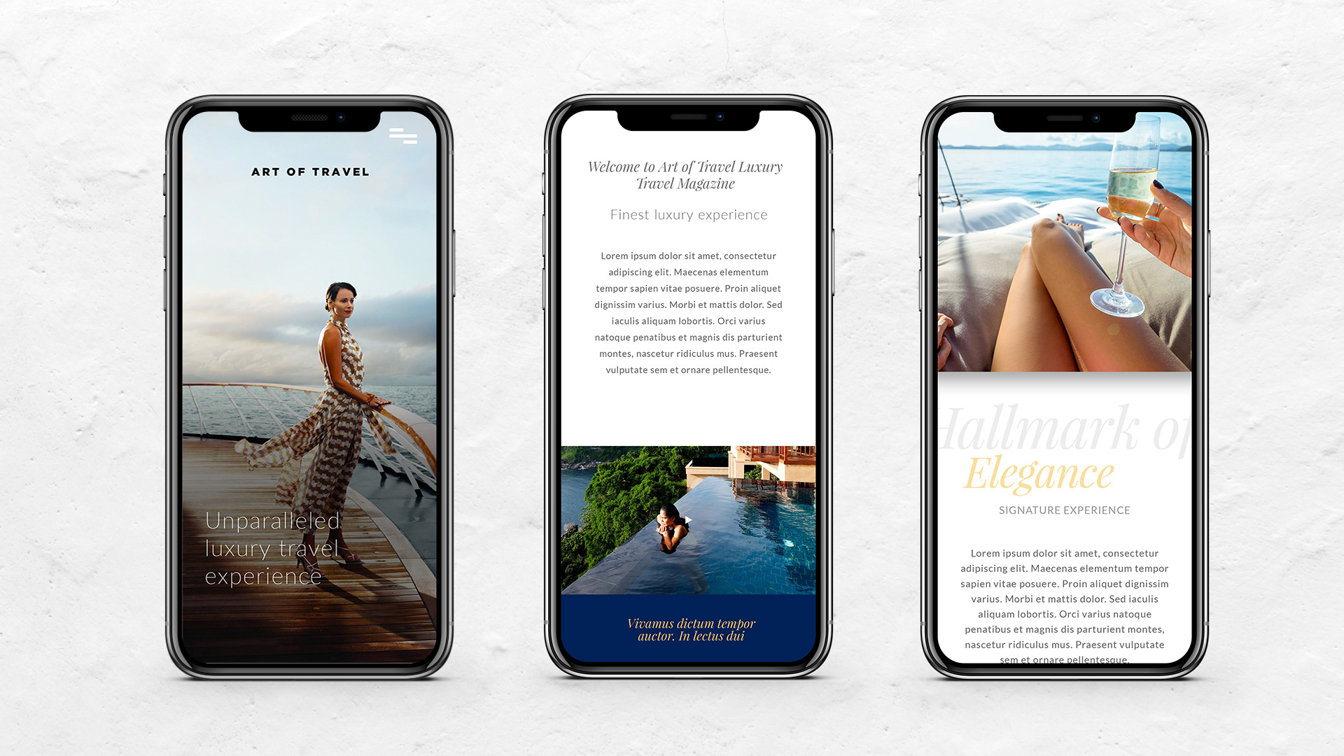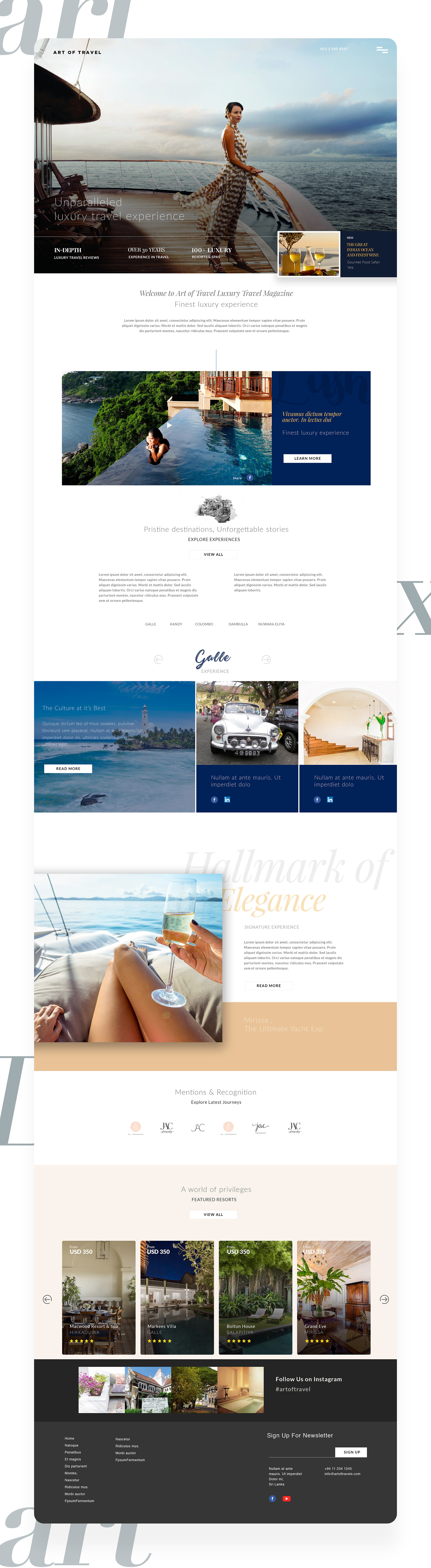 Creative Web Design Concept for Luxury Travel Agent/Brand. Showcasing Premium Experience and addressing the Rich card design system of Google Optimizations. Performance Based Design with Responsive Mobile layouts.